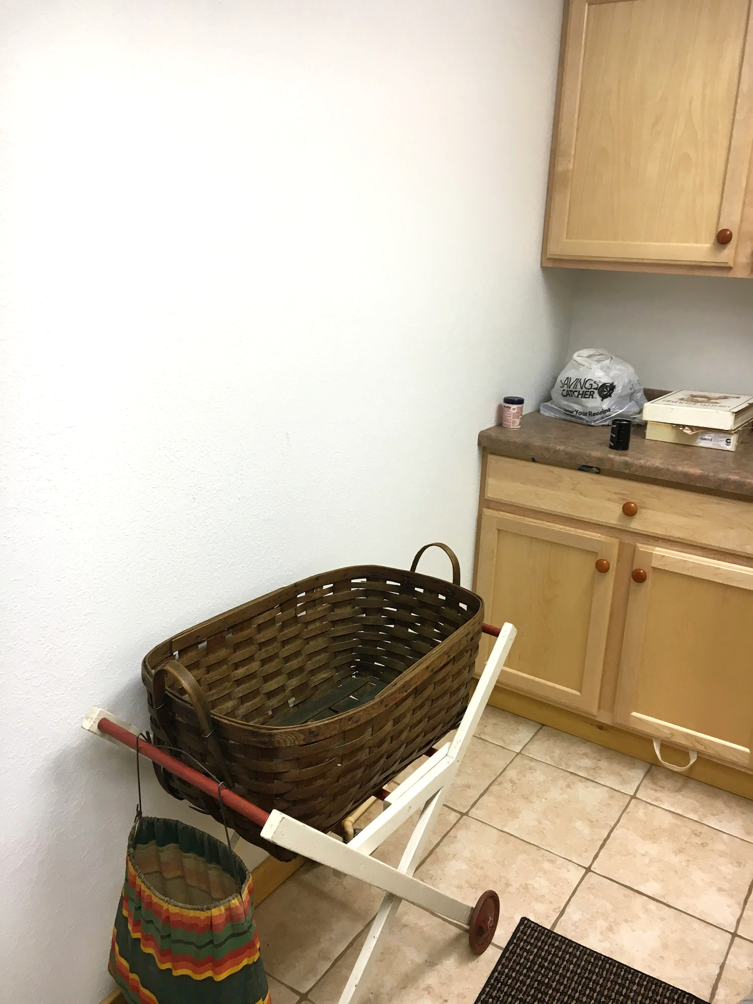 At this time I don’t have a plan for a She Shed outdoors, so I decided I could make one inside. The laundry room is a blank slate and a room not used for anything other than running in to throw loads into the wash or dryer. I decided I could transform it into something more special.