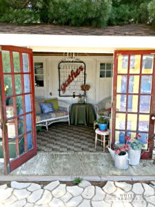 Antique Shop, She Shed, Sayner, WI, Red Door Relics 12th Jul ' 17 Antique Shop, Sayner, WI, Red Door Relics, fire pit, upcycled doors, garden art