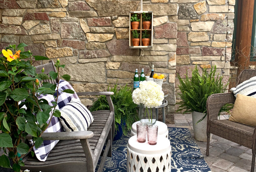 I designed a beautiful patio space inspired by Summer porch decor in blue and white. I’m excited to be joining a talented group of blogging friends for a monthly Pinterest read the post → about Summer Porch Decor in Blue and White