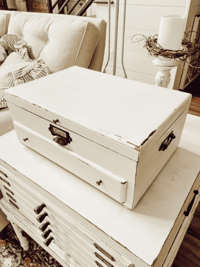 I often put a decorative tray on top of the Kooler.In the Fall, I have this duck motif tray I found at our local thrift shop a few years ago.