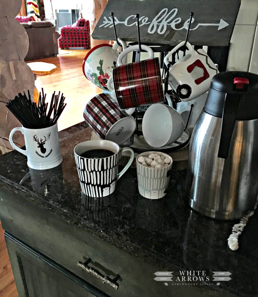 Coffee and hot chocolate are always warm and waiting on the edge of the kitchen counter. This mug rack was a great price at World Market.